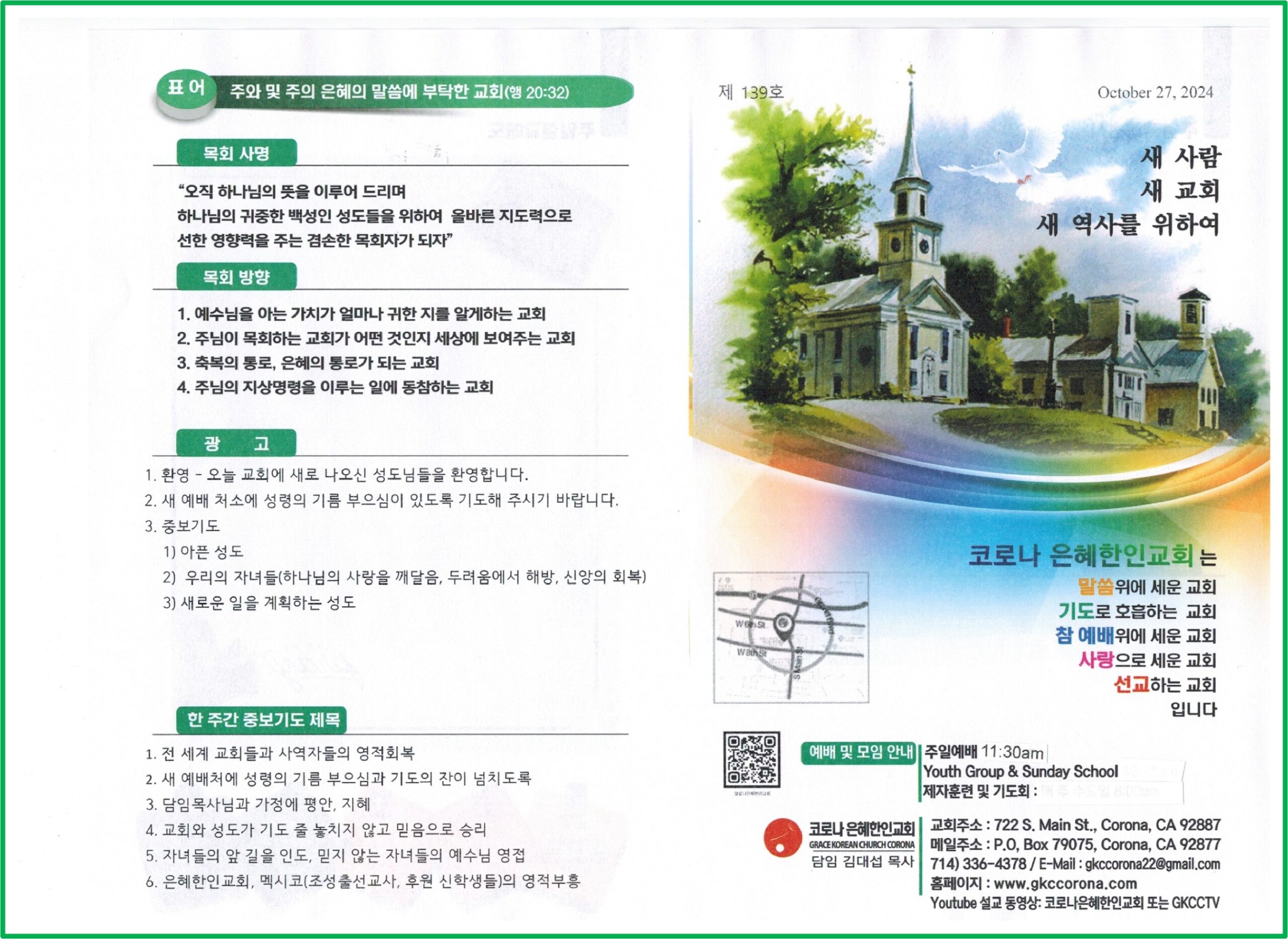 담임목사 인사말 및 소개