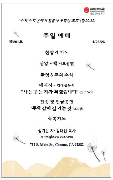 교회주소 : 722 S. Main St., Corona, CA 92887