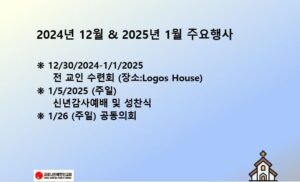 주일설교 말씀 의기양양하게 살아갈 수 있는 이유 날짜: 2024. 12. 29 제목: 의기양양하게 살아갈 수 있는 이유 말씀: 이사야 7:14; 마태복음 1:23adminJanuary 11, 2025