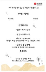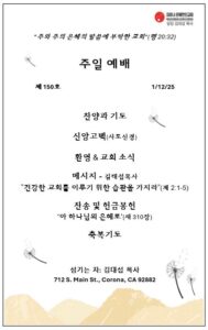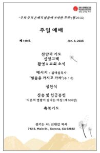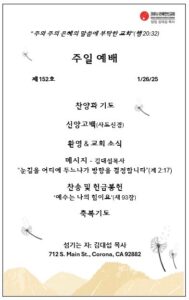 주일설교 말씀 건강한 교회를 이루기 위한 습관을 가지라 날짜: 2025. 01. 12 제목: 건강한 교회를 이루기 위한 습관을 가지라 말씀: 요한계시록 2:1~5adminJanuary 23, 2025